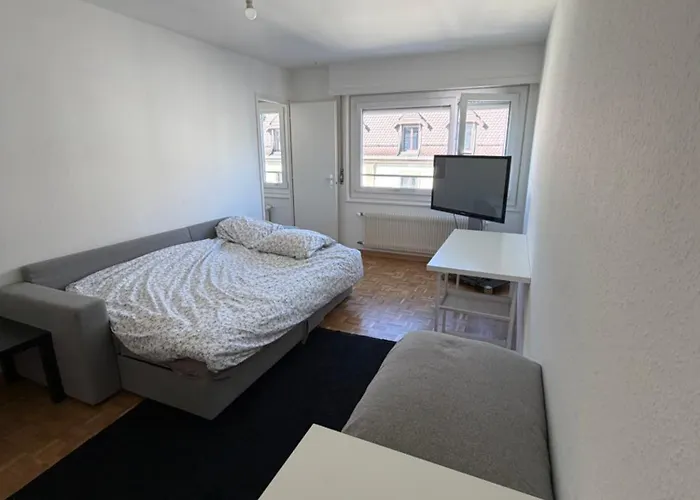 - ❓Que paragens de transporte estão perto de Studio Lumineux Au Coeur De Lausanne?Existe uma estação de metro Lausanne-Flon apenas a 100 metros de Studio Lumineux Au Coeur De Lausanne, juntamente com uma paragem de autocarros Montbenon nas proximidades, situado a aproximadamente 5 minutos a pé de distância.